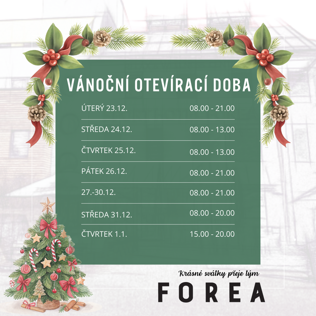 Chcete potěšit své blízké dárkem, který si opravdu užijí? Pořiďte jim vánoční voucher FOREA – snadno online nebo přímo na naší recepci.